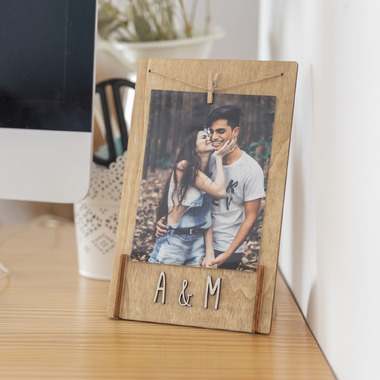 Celebrate your favorite memories with a personalized wooden photo frame - perfect for birthdays, holidays, or just because. Made from sustainable forest wood, this charming photo holder features a clip to hang your best photo and comes with adhesive lettering kit so you can easily add whichever word or name you want. Simply enter their name, and well handle the rest.