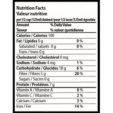 VitaBio Organic Red Kidney Beans with no salt added have a very high source of fibre.