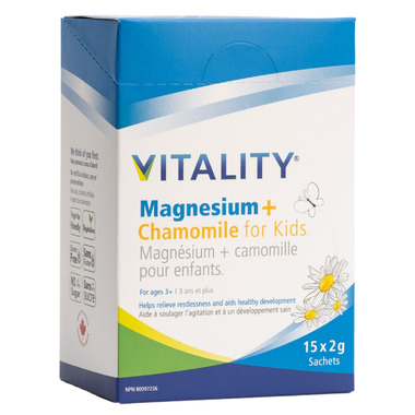 Magnesium is a leading deficiency in children. VITALITY Magnesium + Chamomile for Kids works for children ages 3+. This gentle formula blends German Chamomile which is ideal for relaxation and supports healthy growth of children and teens. A mild tea taste which can be drank during the day or at bedtime.