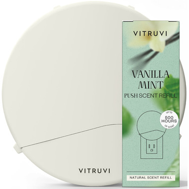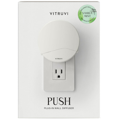The Push Plug-In Wall Diffuser delivers 100% natural scent for up to 500 hours - mess-free, and effortless. With adjustable scent strength and easy-swap cartridges, its the simplest way to refresh your space. Scenting up to 200 sq. ft., it seamlessly fits into any space - effortlessly bringing natural fragrance from room to room. Packaged with Vitruvi's Vanilla Mint Push Scent Refill, it's the perfect way to begin scenting your home, naturally.