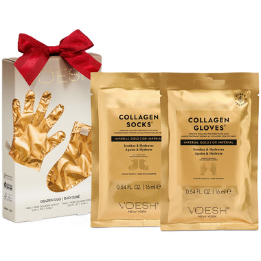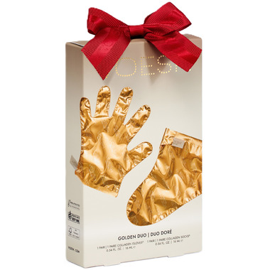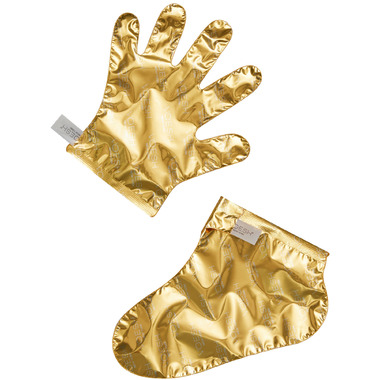 Featuring luxurious golden collagen gloves and socks. this set restores hydration, softens skin, and pampers hands and feet with a touch of elegance.