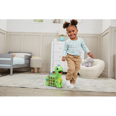 What do you call a baby potato? A tater tot! In Music mode, Chompers sings a unique song about each snack. Discover how the dinosaur is feeling, play games and answer questions using the dino buttons or turn the spinner to get little fingers and the food pieces moving. Chompers is full!