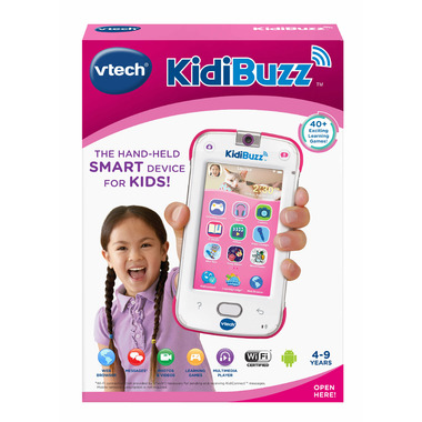 Connect, share and play with KidiBuzz™, the hand-held smart device for kids! Send texts, voice messages, photos, drawings and animated stickers over Wi-Fi to mom, dad and a parent-approved contact list. Check out popular websites through the kid-safe web browser or download popular Android™ apps. KidiBuzz™ is also preloaded with more than 40 exciting learning games and awesome apps. Perfect for kids on the go, its bumpers and shatter-safe screen let them take it anywhere. The KidiBuzz™ smart device is made for fun, and made for kids!