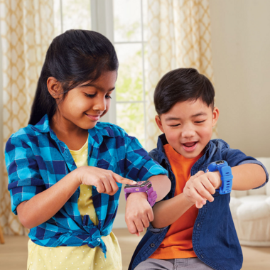The coolest and best-selling kids' smartwatch brand is here - the KidiZoom Smartwatch DX3. The kid-friendly DX3 features dual cameras for pictures, selfies and videos along with one- and two-player games, daily reminders and more. The light on the watch doubles as camera flash and flashlight. Create custom clock faces from your own photos or swipe through 50+ animated faces to make time-telling exciting. Set Daily Reminders to help you stay on track, and switch to School mode when its time to limit the DX3 to a watch only. Play single-player games like Monster Catcher and find 80+ invisible creatures!