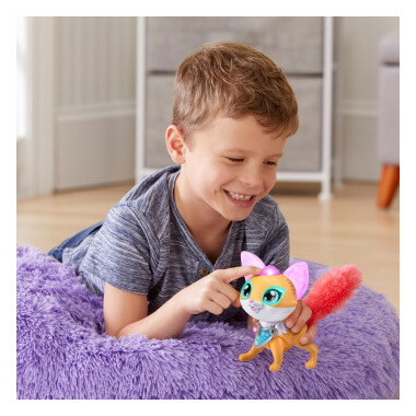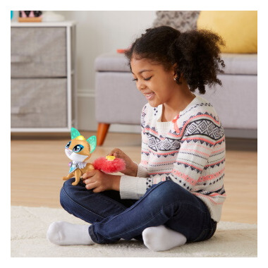 Playtime is magical with Myla’s Sparkling Friends™ Finn the Fox! This beautiful fox toy talks, sings and lights up with a kaleidoscope of colors. Touch Finn’s magical necklace, then touch her hair, eyes and ears to change their color.