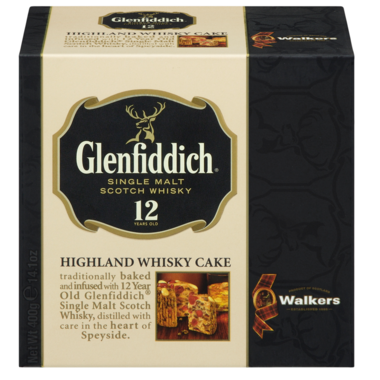 Highland whiskey cake traditionally baked and infused with 12 year old glenfiddich single malt scotch whiskey, distilled with care in the heart of speyside.