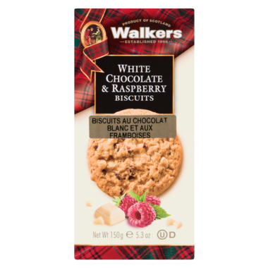 These delicious biscuits are baked to a traditional recipe and offer an indulgent treat for all with the fresh tang of raspberries and delicious chunks of white chocolate.