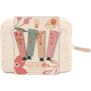 Give your hands the gift of ultimate hydration and care this holiday season with Wanderflower's Hand Repair Set. Perfect for dry winter skin, this beautifully curated collection includes four richly moisturizing hand creams, each crafted to soothe, repair, and protect even the most parched hands.
