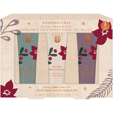 Treat your hands to the magic of the season with Wanderflower's Hand Cream Trio Set. This luxurious trio hydrates, soothes, and delights the senses with every application, perfect for the cold winter season.