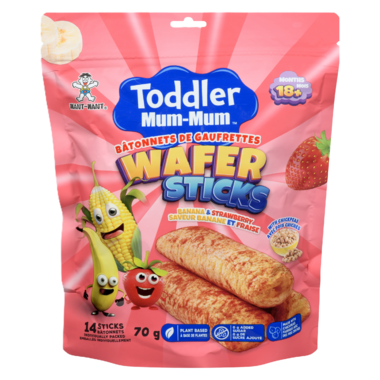 Made from Chickpea, Corn and Rice, Toddler Mum-Mum Wafer Sticks are individually wrapped for a fun, on the go snack.