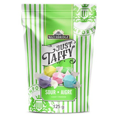 There are six delicious sour flavours to choose from inside each bag of Waterbridge Just Taffy Sour. Which flavour will be your favourite? Will it be tangy lemon or sparkly raspberry? Crisp apple or juicy grape? Maybe you'll fall for zesty orange or crave succulent cherry! Whatever your tastes, you'll find the perfect sour taffy piece to satisfy your sweet tooth inside this bag!