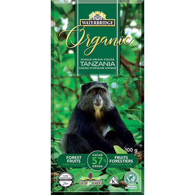 Waterbridge Organic Forest Fruits Dark Chocolate 57% Cocoa comes from a single origin in Tanzania. This chocolate bar celebrates a school in the village of Ikombe.