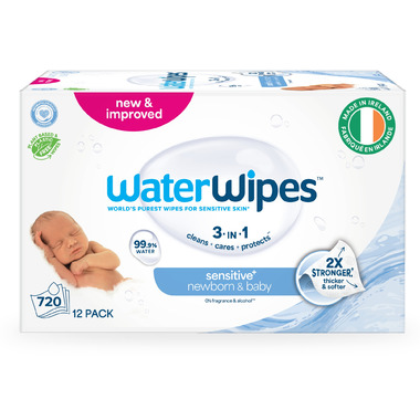 Introducing New & Improved WaterWipes, the World’s Purest Wipes for Sensitive Skin. Families can continue to trust WaterWipes Sensitive+ New Born & Baby Wipes to gently clean,  care and help protect sensitive skin - now with a 2X stronger. Thicker and softer wipe, and a fresh new look. The plant-based & plastic free wipes maintain the same purity, with just two carefully selected ingredients: 99.9% ultra-purified water and a drop of fruit extract. The ultra-purified water undergoes a 7-step process, making it even purer than tap, boiled, or bottled water. WaterWipes remain unscented, hypoallergenic, and gentle on sensitive skin. They are clinically proven to be kind to baby’s skin—giving parents the confidence to help protect their children in the purest way possible.