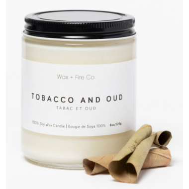 Wax + Fire Soy Candle Tobacco And Oud is rated 5.0 out of 5 by 1.