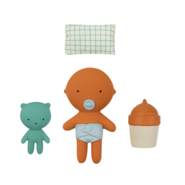 Gommu family is getting bigger or maybe should we say smaller? Find Baby Gommu in POCKET size! Baby Gommu Vainilla comes with its best friend bear, a bottle of milk and a cushioned pillow for nap time. All these toys in one carboard bed for long hours of play! Made in China.