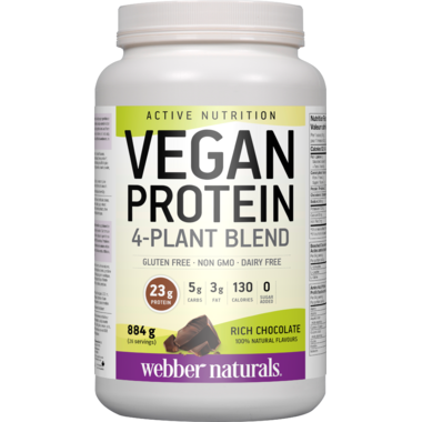 Active Nutrition Vegan Protein from Webber Naturals provides 23 g of non-GMO vegan protein in each serving.