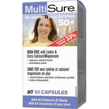 Webber Naturals MultiSure for Women 50+ is a comprehensive formula that supports the function of many of the bodily processes, including metabolism, bone health, and immune function. It provides an antioxidant action that protects against free radical damage for the maintenance of good health.