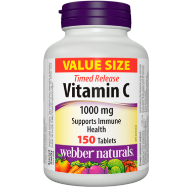Timed Release Vitamin C from Webber Naturals provides 1000mg of vitamin C for ongoing immune support throughout the day. Vitamin C is an antioxidant that helps in the development and maintenance of bones, cartilage, teeth, and gums.
