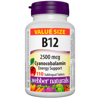 The ability to absorb vitamin B12 in the stomach declines as we age. Anyone over age 50 and people with digestive problems are at risk of B12 deficiency. B12 Cyanocobalamin 2500 mcg in natural cherry flavour from Webber Naturals bypasses the stomach, providing B12 directly into the bloodstream for support of metabolism, red blood cell production, and good health.
