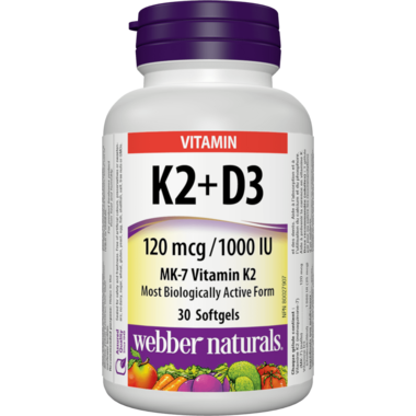 Vitamin K2 and D3 from webber naturals features vitamin K2 as menaquinone-7 (MK-7), a fat-soluble form of vitamin K that offers 24-hour benefits in a single dose. Exciting research shows that vitamin K2 directs calcium to bones and away from arteries. Vitamin D3 plays a key role in calcium absorption.
