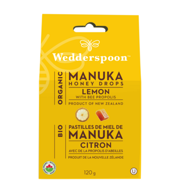 A timeless classic. Wedderspoon's Manuka honey and lemon drops with Bee Propolis will surely become your new best friend. Zesty and soothing, these lozenges are both tasty and effective. Use Year-Round for Occasional Dry Throat or Mouth.