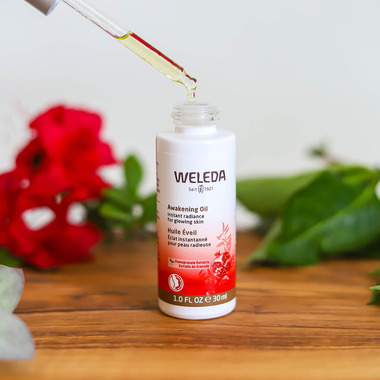 Weleda Awakening Oil helps provide intense nourishment, visibly smoother skin, has a light formula and is quickly absorbed (non greasy finish).