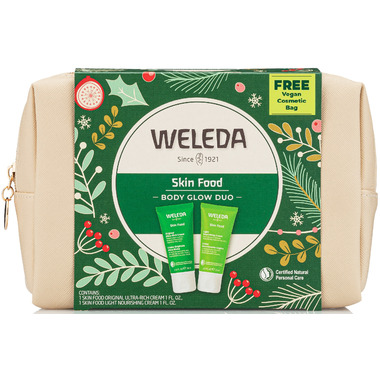 The ultimate gift set for the beauty lover who knows skincare goes from head to toe. This exclusive collection features Weleda's iconic glow-boosting duo of Skin Food Original and Skin Food Light, along with a FREE bonus cosmetic bag, making it perfect for holiday gifting or treating yourself. These award-winning, multi-use hand and body creams are packed with plant-rich extracts like calendula and sunflower oil to deeply moisturize without leaving a greasy feel. Fast-absorbing and gentle, they provide lasting hydration from morning to night. Whether you're stuffing stockings, trying something new, or crossing off your lift, this best-selling duo has you covered.