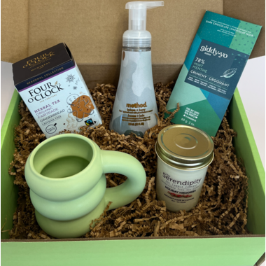 I have really enjoyed the items in this box. The mug is unique and funky and great to use with the tea. I have been enjoying the candle in the kitchen and the hand soap in the bathroom.