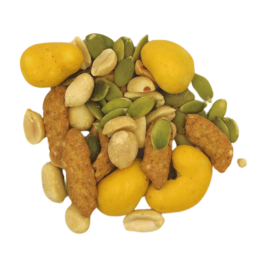 Indulge in this unique Snack Mix, featuring White Chocolate Coconut Curry Cashews for a sweet and savory twist. Complemented by Sesame Sticks, Roasted Blanched Peanuts, and Organic Pumpkin Seeds.