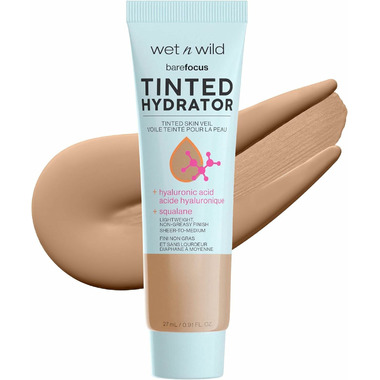 More than just a moisturizer, the Bare Focus Tinted Hydrator Tinted Skin Veil perfects with sheer-to-medium coverage, while granting your skin some seriously intense hydration. Formulated with hyaluronic acid and vegan squalane, this is a one-way ticket to quenched perfection! Buildable with a semi-matte finish, this two-in-one miracle creates a naturally flawless and nourished glow. Use it to transform a multi-step routine into a one-step regimen, so youll be ready in a splash with this lightweight, multipurpose, and super convenient formula. Simply tap, blend and build to your preferred coverage for hydrated, radiant, instant perfection. Select from Wet N Wild's versatile range of shades to transport yourself to complexion paradise!
