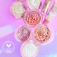 Hello Kitty, is that you? This pressed powder formula features 3 highlighter shades, including a shade in the shape of Hello Kitty herself! This silky-smooth formula applies and blends seamlessly. Use shades individually or mix to your desired level of luminosity.