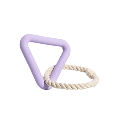 The Triangle Tug in Lilac boasts two shapes, two textures, and is perfect for tug-of-war. If you’re in a multi-dog household or at the other end of your pup’s tug-match, the Triangle Tug is built for you. The triangle is 100% natural rubber with a reinforced core for added strength. The rope is 100% natural cotton with a 7x looped seam and reinforced stitching throughout.
