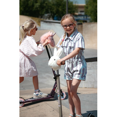 Turn your scooter or bike into a real friend with this fun animal head for the handlebars. This little rabbit would love to go out with you! These super soft heads can easily be applied with hook & loop closure to your handlebars. Both on a scooter or children's bike.