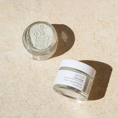 Kaolin, French green clay, Lavender powder*, Lemon balm powder, Chamomile powder, Marshmallow root powder, Spirulina, Colloidal oats, Papaya fruit extract, Palmarosa*, Clary sage, and Juniper* essential oils | * organic