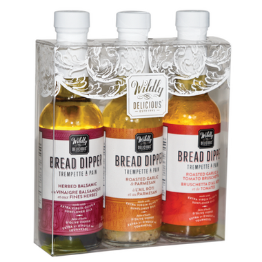 The Wildly Delicious Bread Dipper Sampler Gift Set is perfect as a gift or for entertaining! Try an assortment of Wildly Delicious' wildly popular bread dippers, including Roasted Garlic & Parmesan, Herbed Balsamic, and Roasted Garlic & Tomato Bruschetta.