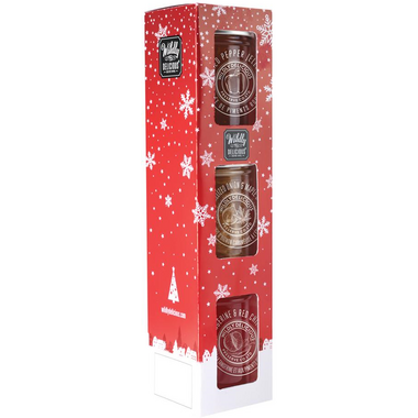 This holiday gift pack contains compact selections of Wildly Delicious's best charcuterie accompaniments. Packaging has a touch of opulent sparkle to bring holiday cheer to your table.
