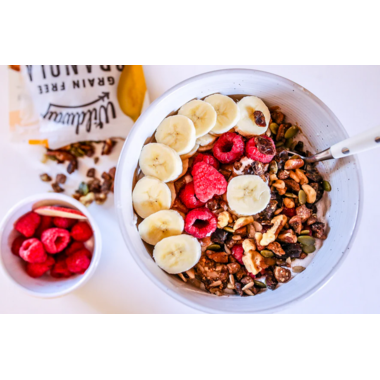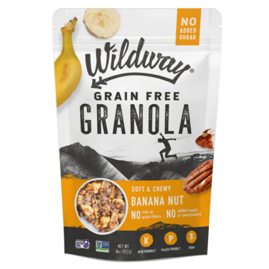Soft and chewy granola that is grain free! This banana nut granola has no oats, grain filler or added sugar.