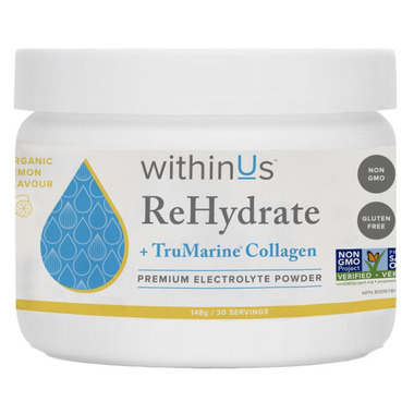 Sweat, Rehydrate, Repeat withinUs ReHydrate + TruMarine Collagen is a premium electrolyte drink powder with the added benefits of TruMarine Collagen. The carefully selected minerals work to replenish electrolytes lost through sweat from heat and exercise.