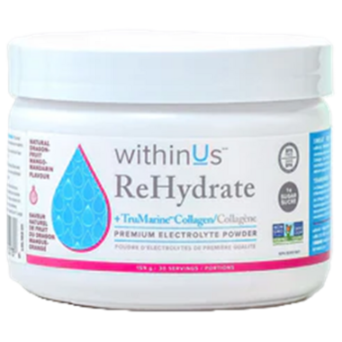 Sweat, Rehydrate, Repeat withinUs ReHydrate + TruMarine Collagen is a premium electrolyte drink powder with the added benefits of TruMarine Collagen. The carefully selected minerals work to replenish electrolytes lost through sweat from heat and exercise.