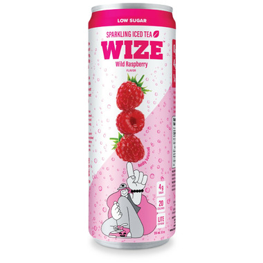 Wize Sparkling Iced Tea Wild Raspberry flavour with 4g of sugar, 20 Calories and Lite Caffeine.