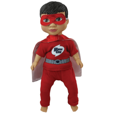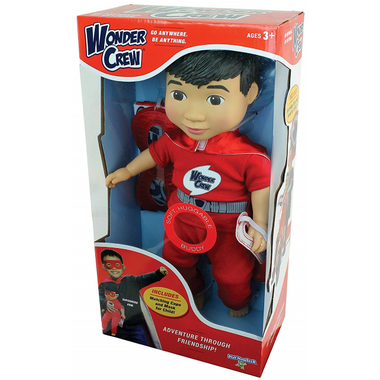 Wonder Crew combines the adventure of an action figure with the emotional connection of a stuffed animal to give children a best friend!  He's an awesome sidekick and confidant who will go everywhere a child goes…there's limitless action packed, loving, imaginative times ahead! The 15" buddy has a smooth vinyl head, arms and legs, and a soft huggable body. He comes with a superhero outfit, cape and mask, plus a matching cape and mask for the child!