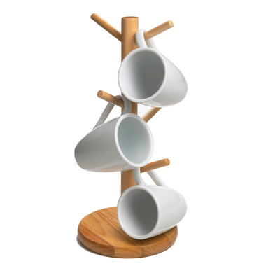 - Holds up to 6 mugs by their handles