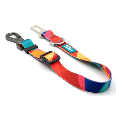 The Woof Concept Seat Belt Leash attaches to a dog harness or collar, and then clicks easily in your car's seatbelt attachment.