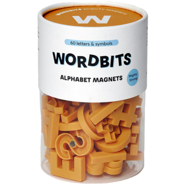 box of Wordbits contains 60 letters and symbols, each with a neodymium
