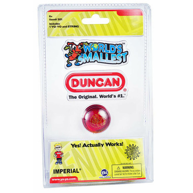 Licensed to be the World's Smallest functional Duncan YoYo ever! Works just like the original. Perform tricks, flips, loops and more!
