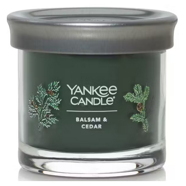 Experience the Yankee Candle brand, totally reimagined. A cotton wick and a premium soy-wax blend provide beautiful ambiance. Hand-illustrated labels and vibrant wax colors are perfectly matched with Collection-exclusive and tried-and-true fragrances to create an an inspired addition to your home. This is a Woody fragrance. Balsam, aromatic cedar wood, and juniper berry blend together in a fresh forest scent.