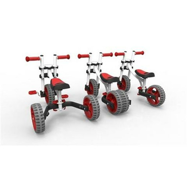 Unlike most combination ride-ons, YBike's patented 3-in-1 conversion system allows parents to easily change the Evolve from a classic style Pedal Trike to a Balance Bike (2 rear wheels, no pedals) and ultimately to an advanced Running Bike (1 rear wheel and no pedals). Adjustable seat height allows the Evolve to grow with the child.