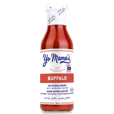 Yo Mama's No Sugar Hot Buffalo Sauce is artfully crafted using vinegar and spices. It offers a delightful hot twist on the American Classic, being completely free from additional sugars and high fructose corn syrup, while also boasting Keto certified. Dress up your dips and make your food extra flavorful with one of Mama's favorites.