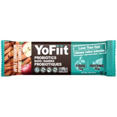 Love your gut with YoFiit Probiatics Bars in Apple Cinnamon made with 12g of fibre and 10g of protein pr bar.