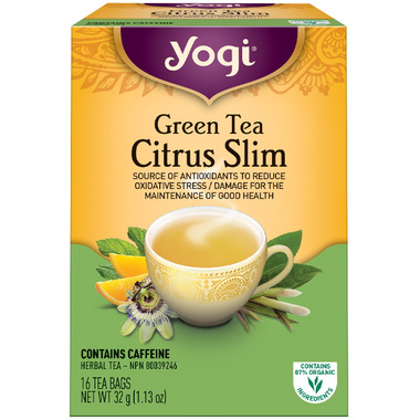 Yogi Tea Citrus Slim Herbal Green Tea is a source of antioxidants used to reduce oxidative stress or damage and for the maintenance of good health.